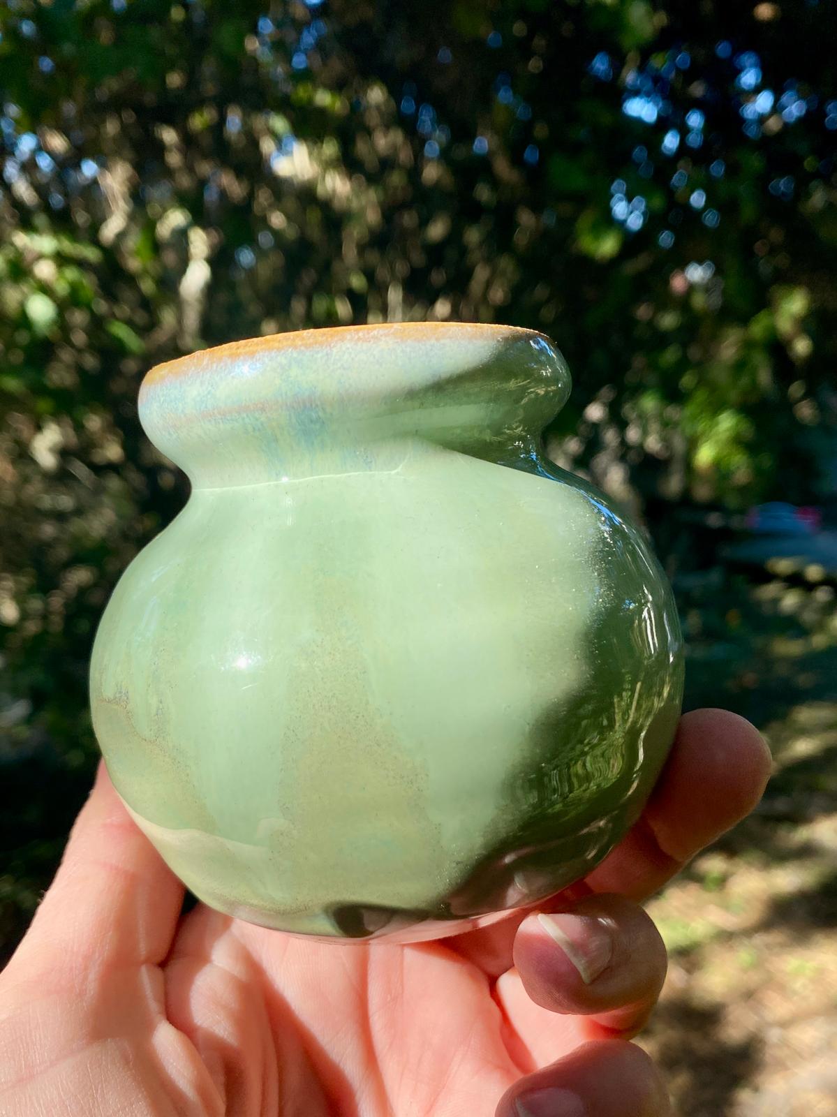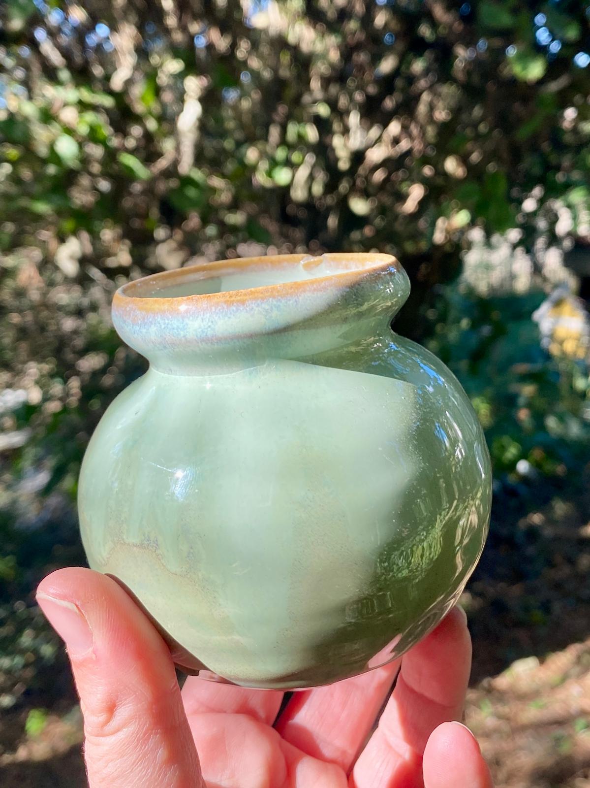 Dit handgemaakte keramieken vaasje is geglazuurd in een frisse mintgroene tint. Ideaal voor een bloem, bloembol of als houder voor geurstokjes, maar minstens zo mooi om gewoon neer te zetten.