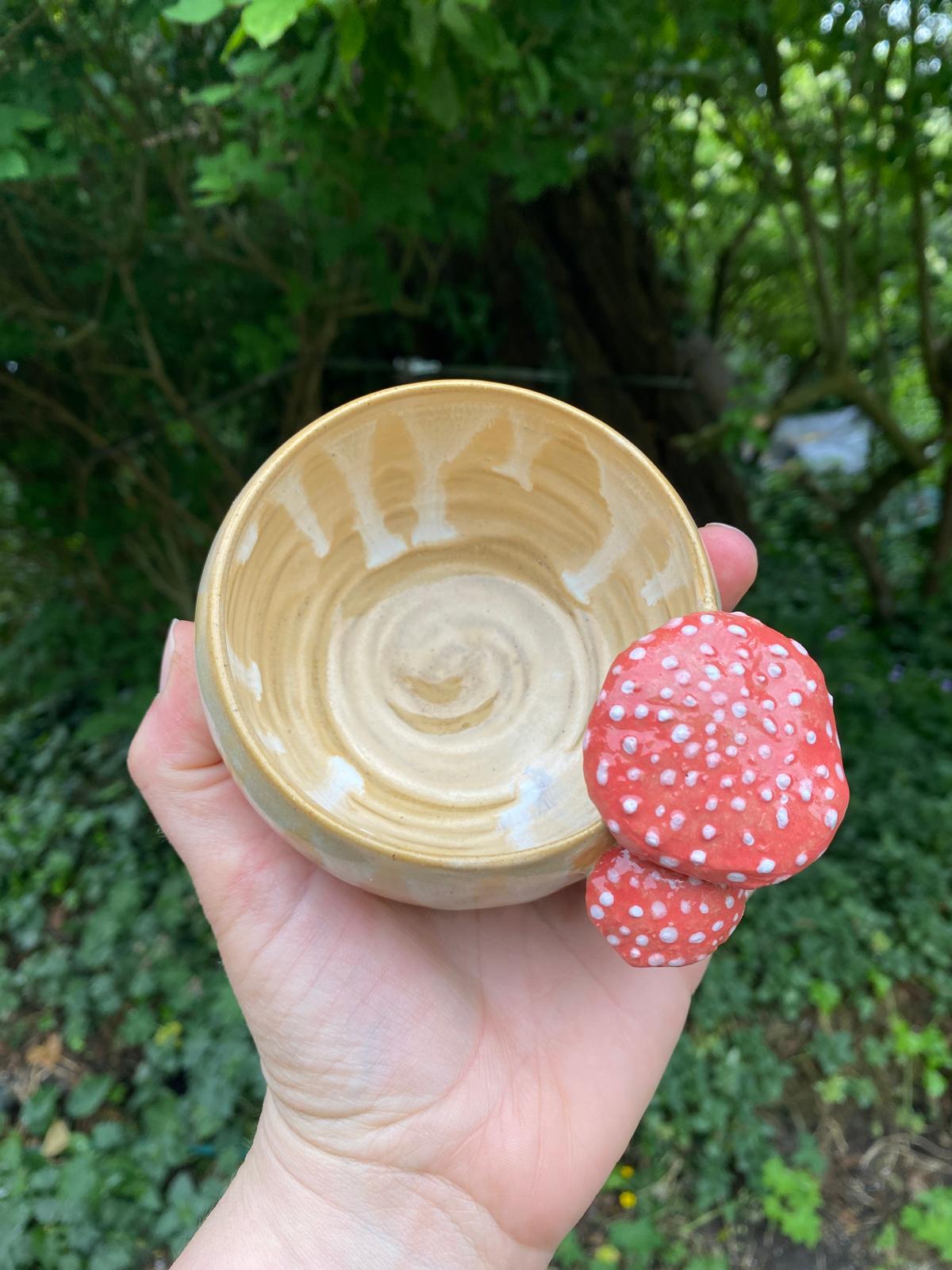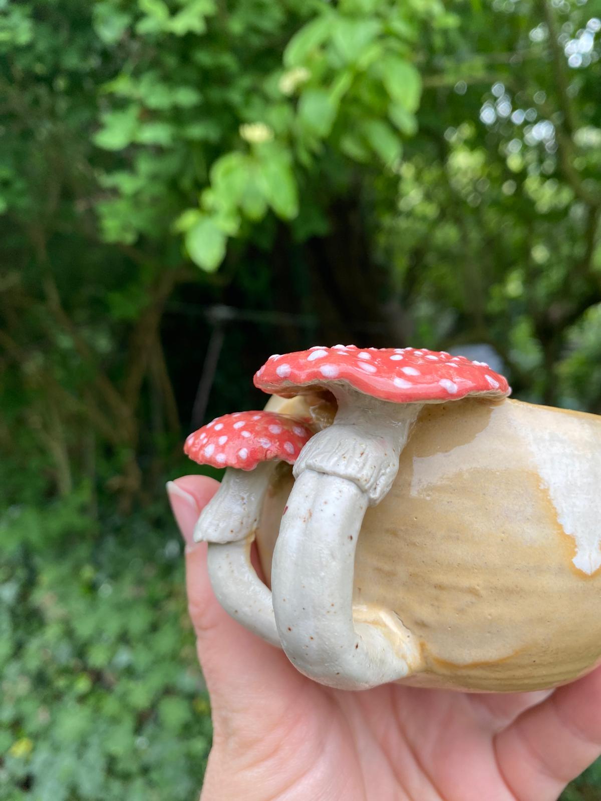 Met zorg met de hand gemaakt en uniek geglazuurd. De vliegenzwam staat symbool voor magie en verwondering – een mok die je herinnert aan de betovering van het bos.