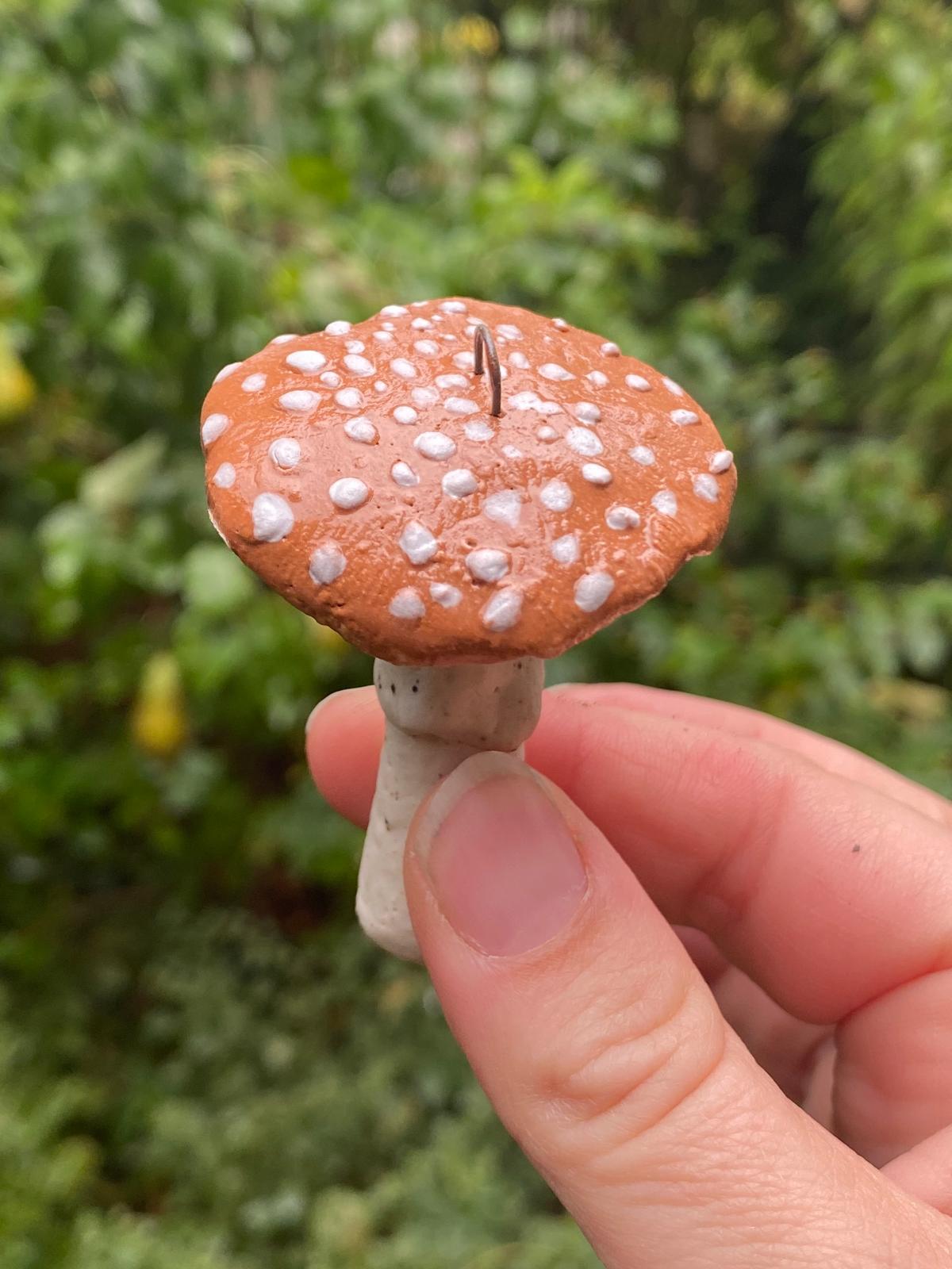 Set van twee handgemaakte keramieken paddenstoeltjes. Leuk om een herfsttak mee aan te kleden of in het raam te hangen. De vliegenzwam is de meest iconische paddenstoel die er is! Zie je een vliegenzwam in het bos dat weet je dat het herfst is!