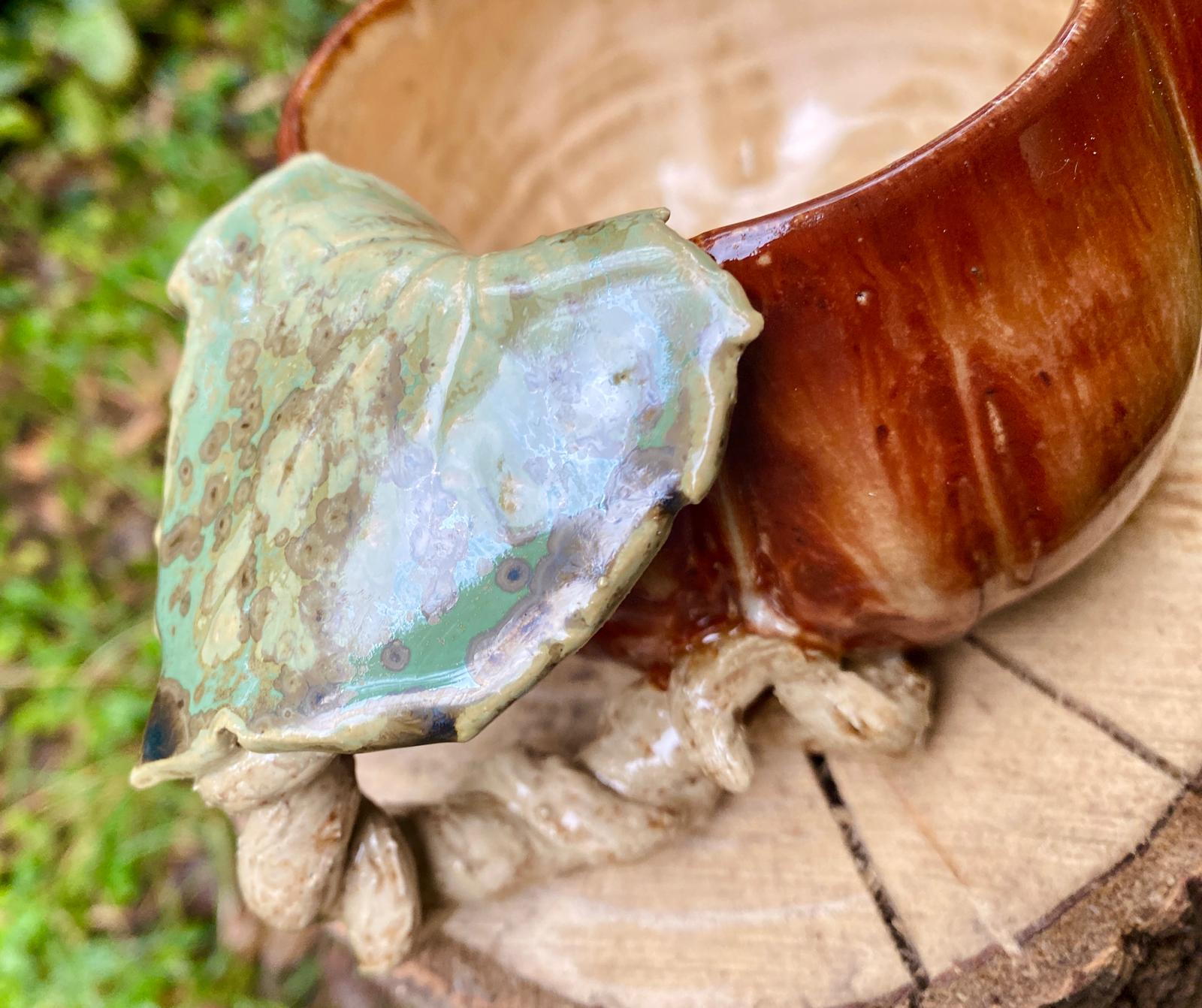 Geen herfst zonder een goede pumpkin spice latte, en er is dan geen mok zo onmisbaar als een pompoenmok. Deze mok is volledig handgevormd en geglazuurd met reactief en kristalglazuur wat hem extra bijzonder maakt!
