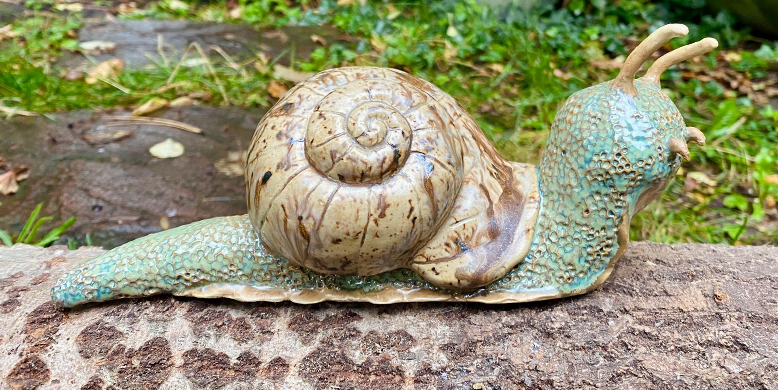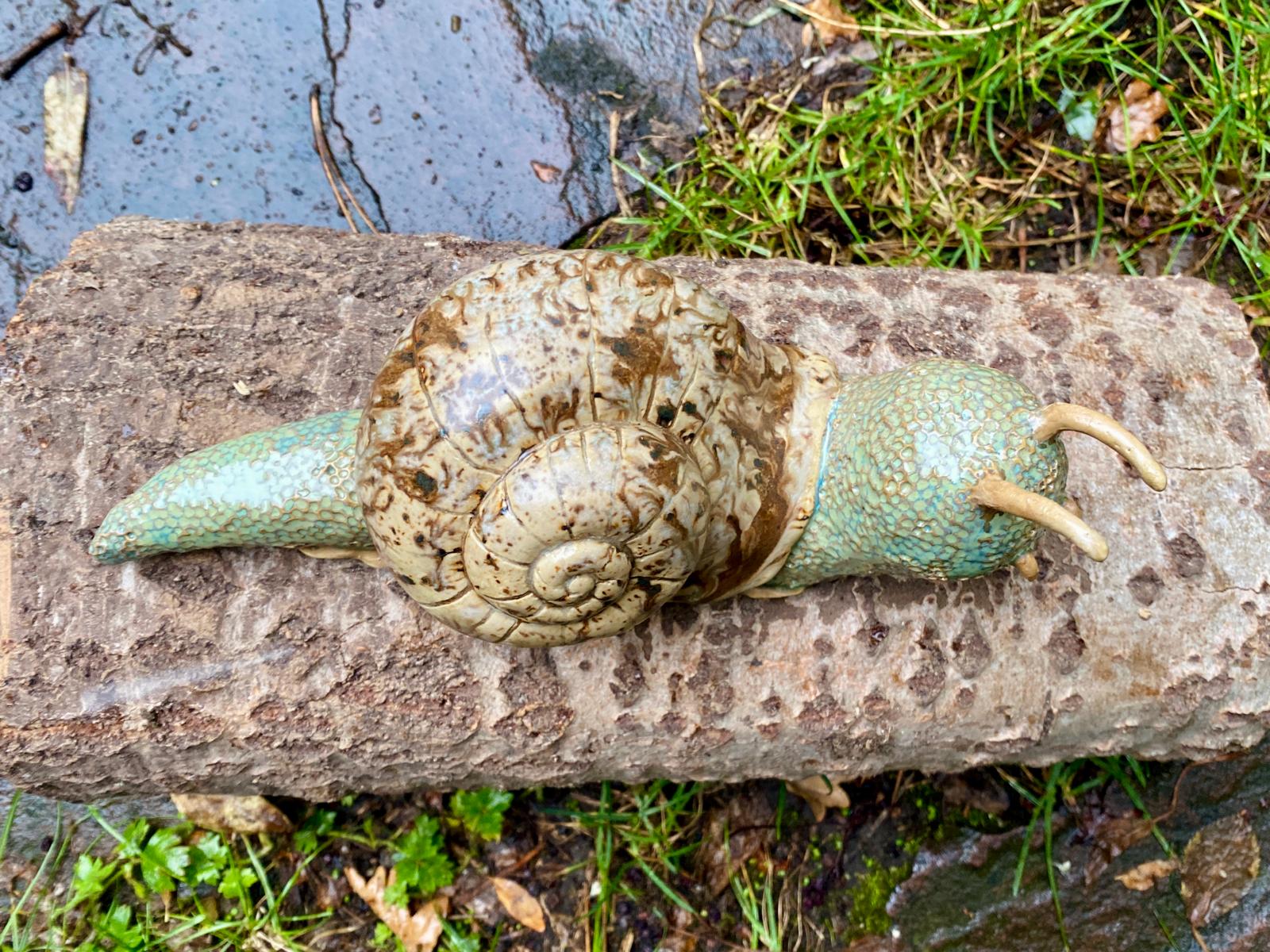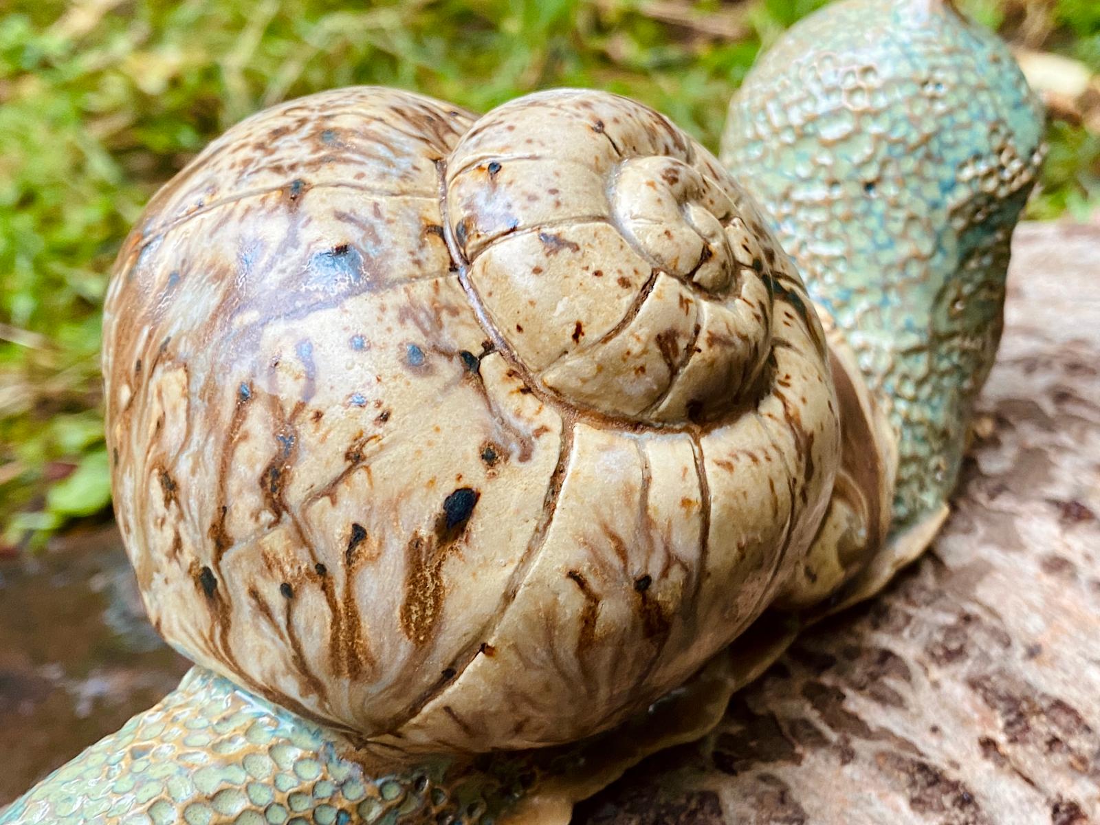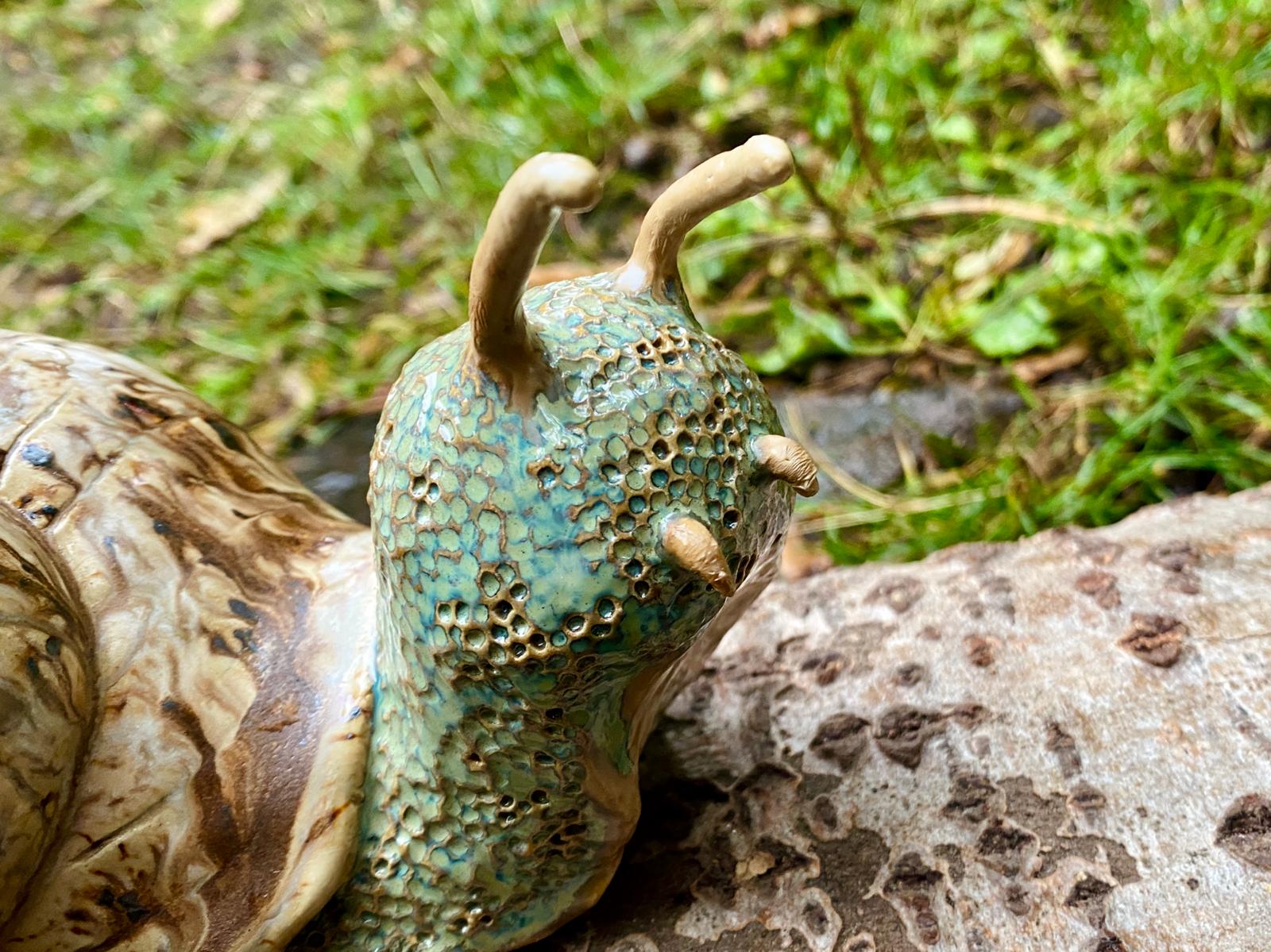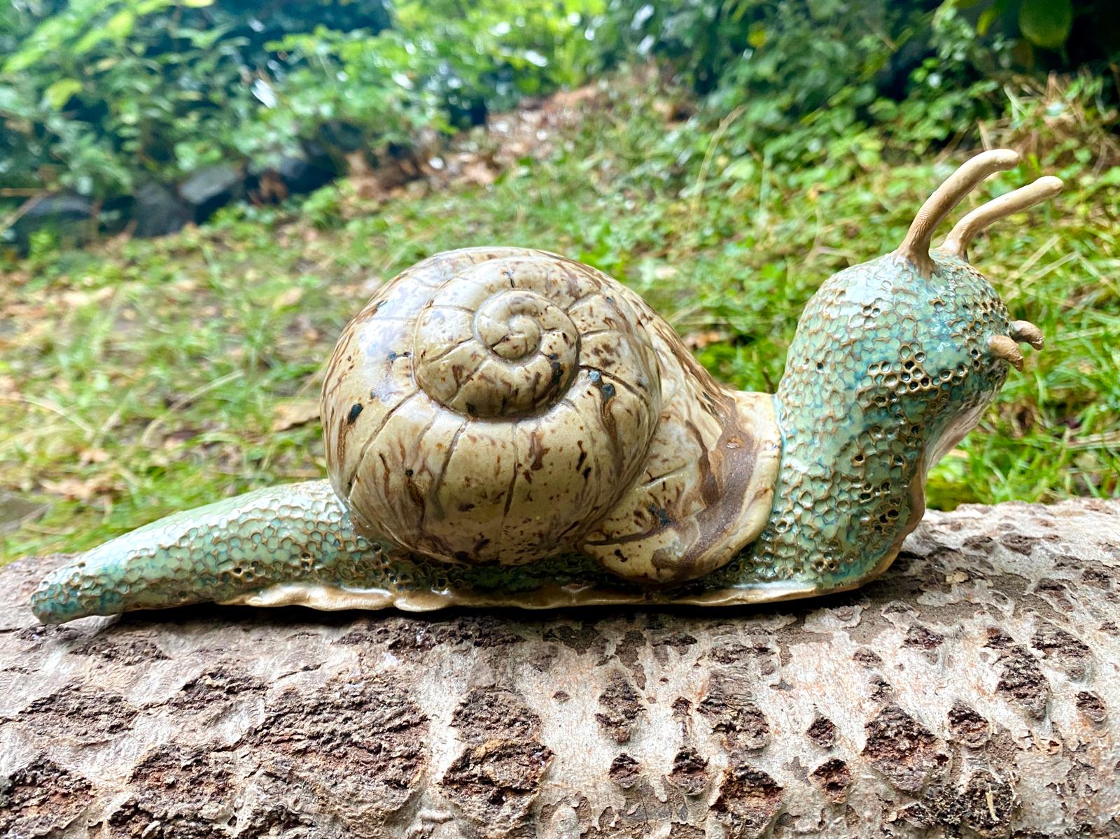Zodra je het bos in loop na en regenbui zie je ze ineens overal: slakjes. Slakken zijn een ultieme reminder voor ons om vaker te vertragen, te genieten van de kleine dingen in het leven. Het slakken sculptuur is helemaal handgevormd en geglazuurd met een combinatie van glazuren wat hem een bijzonder uitlijk geeft. Als je hem in de tuin zet heeft hij een dubbelfunctie als insecten schuilplaats. Stop een beetje stro in de opening achterin het huisje, de ruwe binnenkant is een ideale plek voor diverse beestjes om te verblijven.
