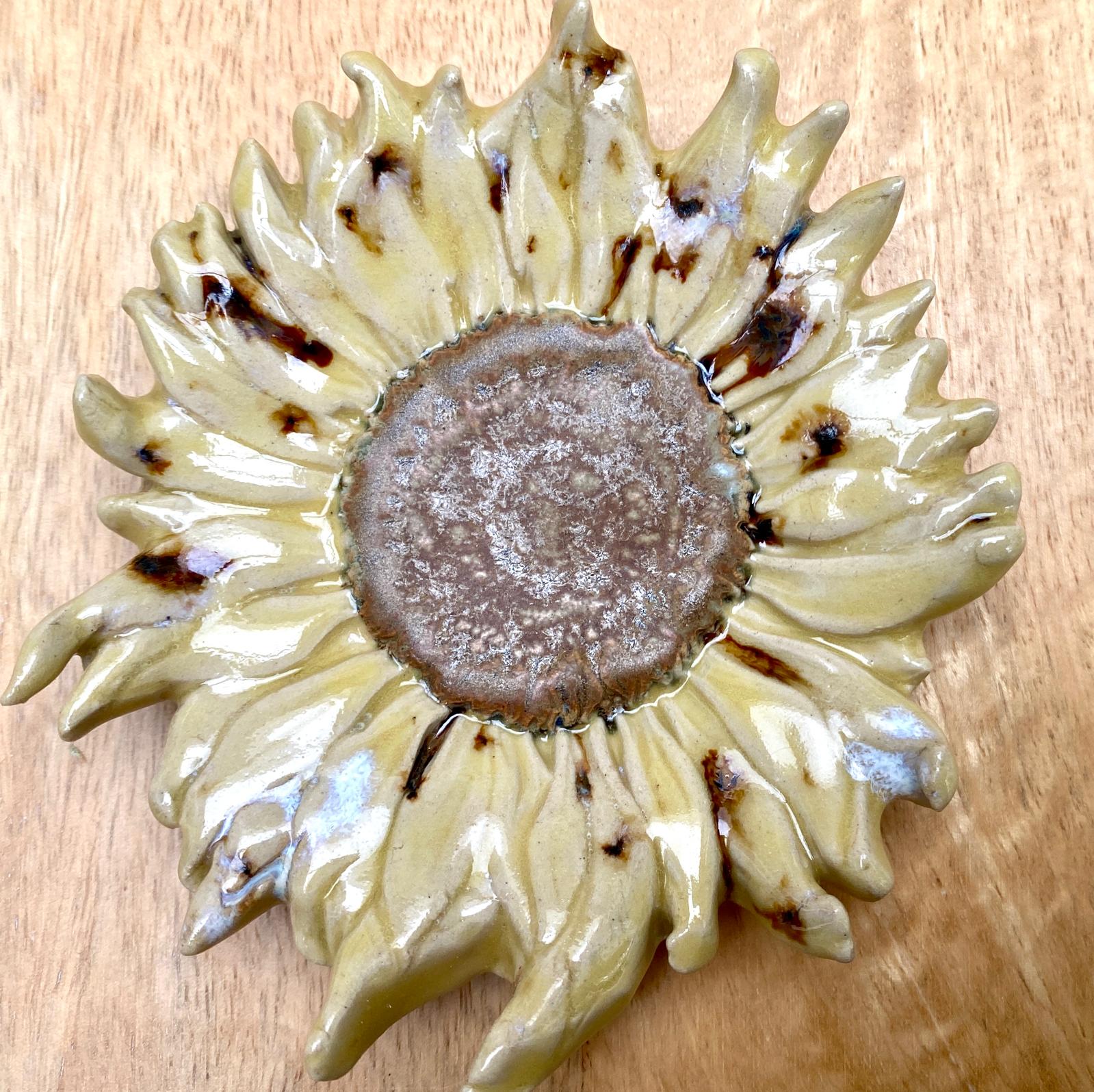 Dit handgemaakte keramieken zonnebloem theetipje met zijn vrolijke bloemvorm en glanzende glazuur brengt een vleugje zon in je keuken of koffietafel. Ideaal om theezakjes op te leggen, kleine snacks te serveren of sieraden in te bewaren en minstens zo leuk om gewoon als decoratie neer te zetten.