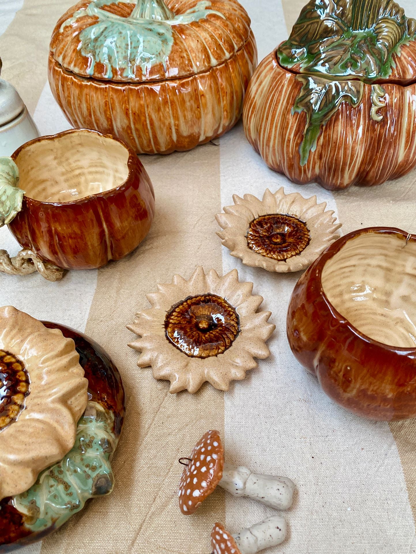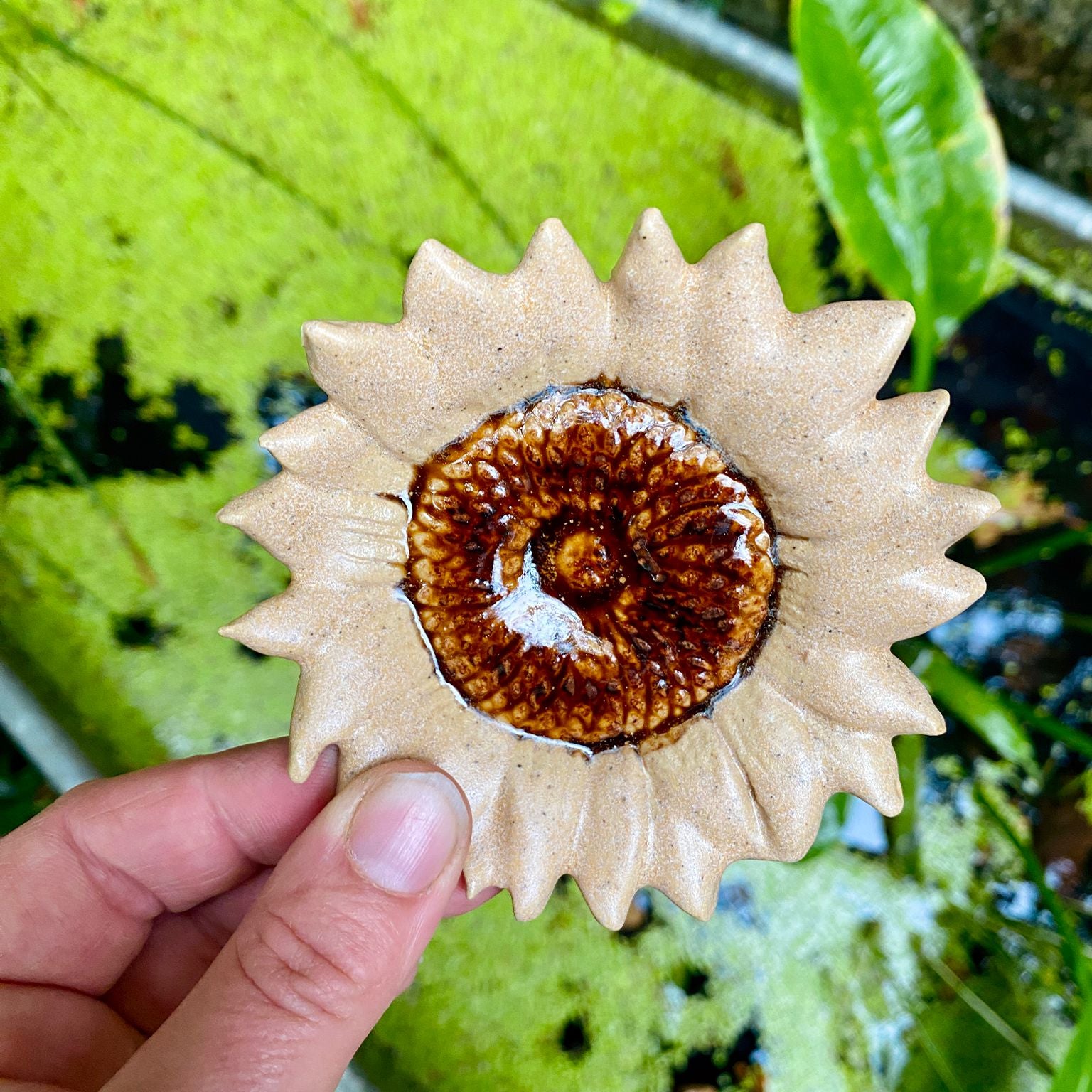 Dit handgemaakte keramieken zonnebloem theetipje met zijn vrolijke bloemvorm en glanzende glazuur brengt een vleugje zon in je keuken of koffietafel. Ideaal om theezakjes op te leggen, kleine snacks te serveren of sieraden in te bewaren en minstens zo leuk om gewoon als decoratie neer te zetten.