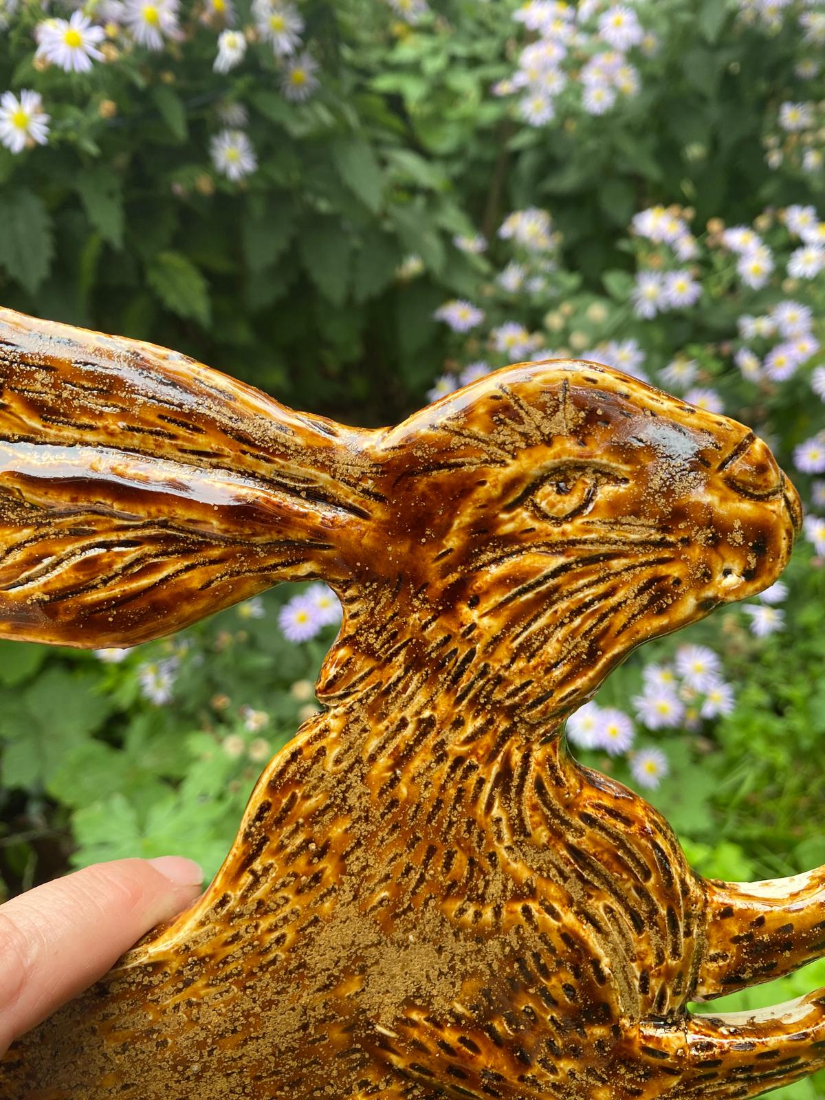 Met zorg met de hand gemaakt en geglazuurd. Het konijn staat symbool voor levenskracht en speelsheid, een eyecatcher die je tuin energie en warmte geeft.